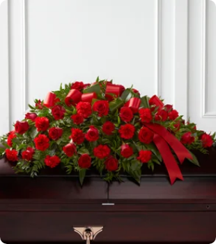 Most families will purchase a floral casket spray. The casket spray is places on the closed end of the casket when it’s open, and centered on the middle when the casket is closed.