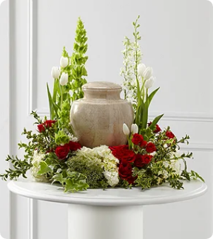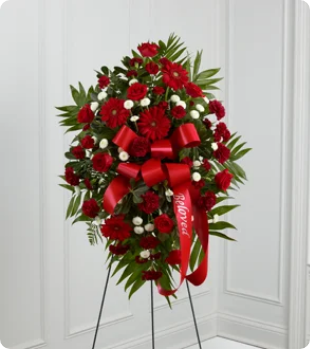 Floral easels are beautiful arrangements. They can stand alone, or two matching easels can be used. When two easels are used, one is placed at each end of the casket or on either side of the table where the urn is displayed.