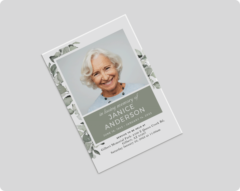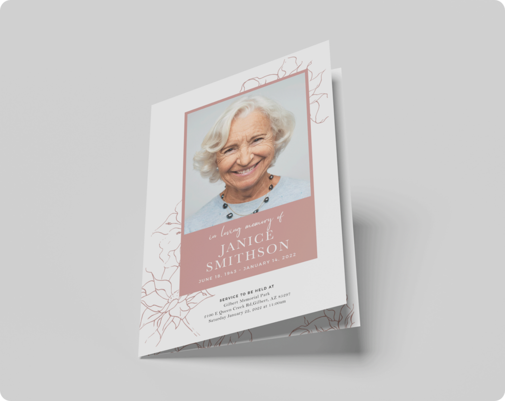 Memorial Folders serve several purposes: First, they provide a keepsake for people to take home in remembrance of the individual that passed. Second, they typically provide an outline of the services such as speakers and musical selections